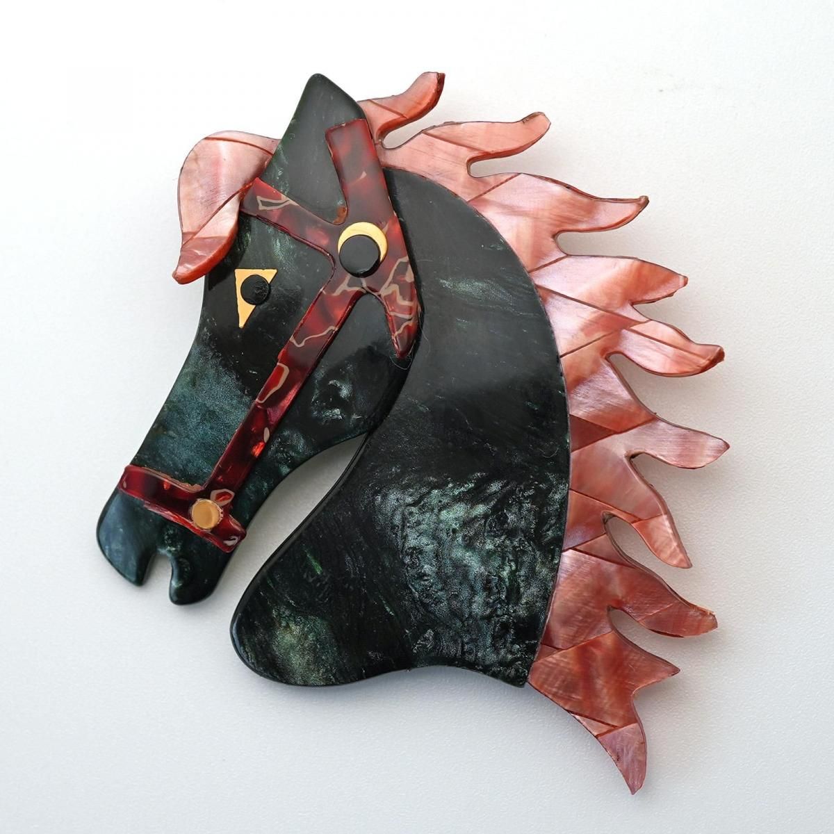 たてがみを風に靡せた、上品で躍動感のある馬のブローチです。