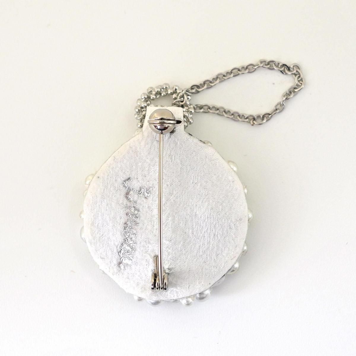 パールのビーズで飾られた縁にシックな色味の盤面が美しく映えます。